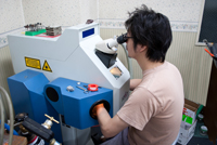 | レーザービームによるピンポイント、ロー付け。 | 35年間あらゆる石を留め続けてきた、ベテランの石留職人。 | デザインを忠実に3D画像に変換する、優れたノウハウを持つオペレーター。 |