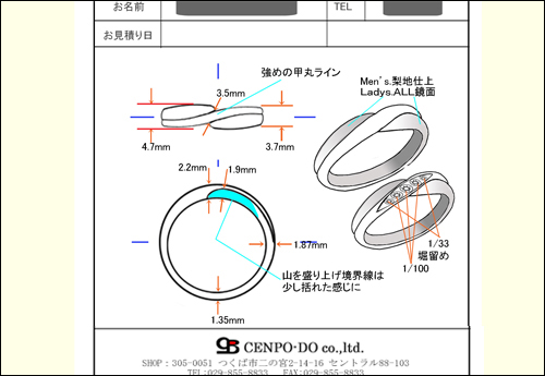 サイズ直しなどはリングの形状(巾)やサイズをUPする大きさにより異なります。この他にもジュエリーに関するご相談やお見積りなどお気軽にお尋ね下さい。