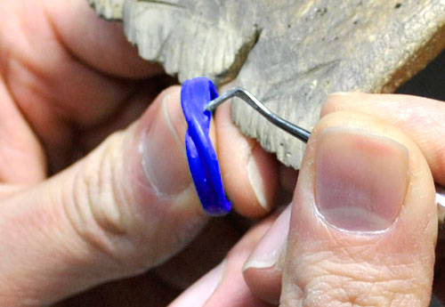 左画像の様なデザインは、微妙なカーブやラインの滑らかさが要求されるため、優れた技術と感性を持つ職人がWAXで原型を作成します。 |
