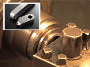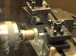 | リング状になった物をダイヤモンドバイトなどを使い、削り出します。 | さらにデザインに忠実に、0.何ミリの単位で削り出していきます。 | 次に「バリ」などを取り除き「溝」や「エッジ」の部分を整えます。 |