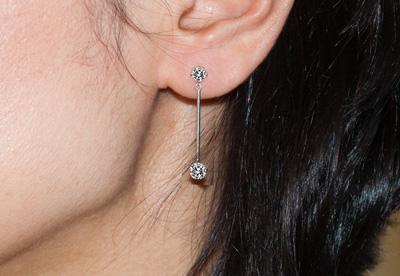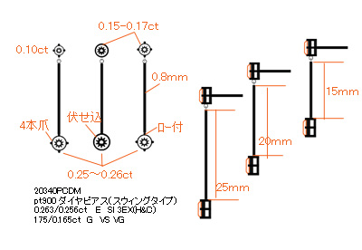 スウィングするダイヤピアスをご注文。ダイヤのボリュームやバーの長さなど、どの程度にしたら良いか解らない、ということでしたので、早速にご予算合わせて、いくつかの(原寸大)デザインと模型をご提案。その中からお好みのデザインをお選びいただき加工しました。