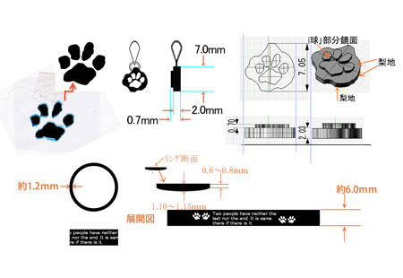 愛犬の手形(肉球)を模り、オリジナルのリングやペンダントを作成。