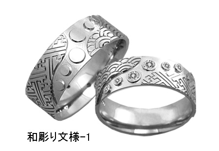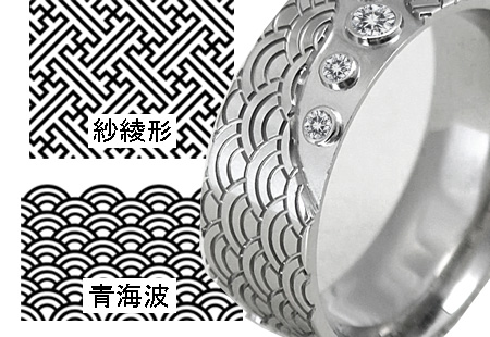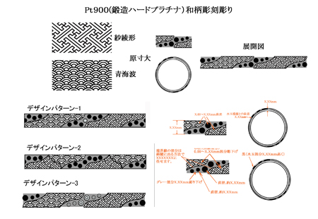 プラチナ.和柄文様彫刻彫りリング