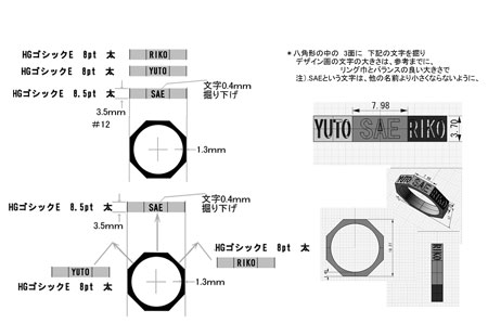 リング表面に名前を深く掘り下げる。
