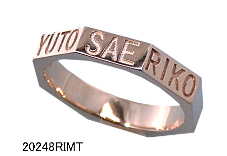K18ピンクゴールドノリングにお母さんと二人のお子様の名前を深く掘り下げました。