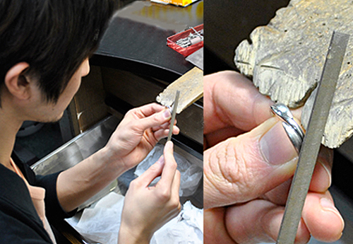 このようにして作られたリングは変形したりキズが付きにくいのが特徴です。